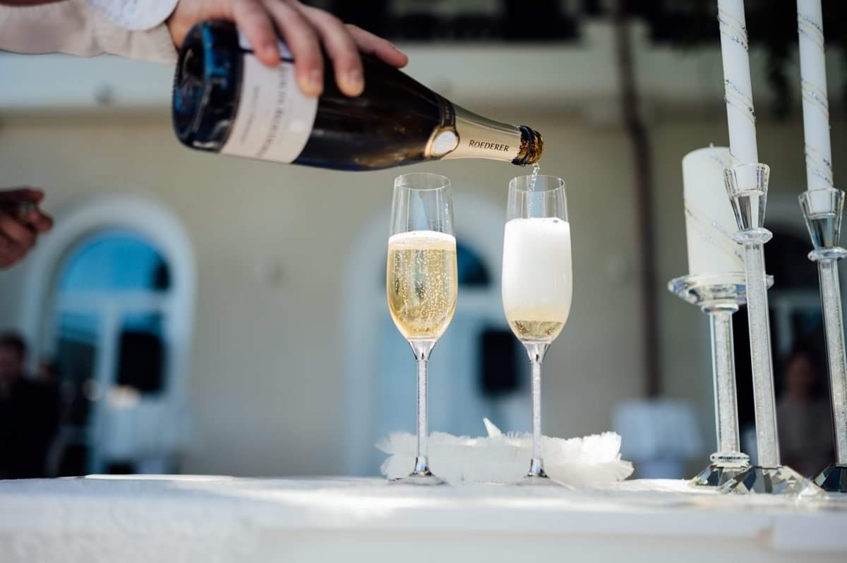 Посрещнете началото на Вашия специален ден под звуците на нежна музика, с чаша пенливо вино в хармония с вкусни хапки за добре дошли.