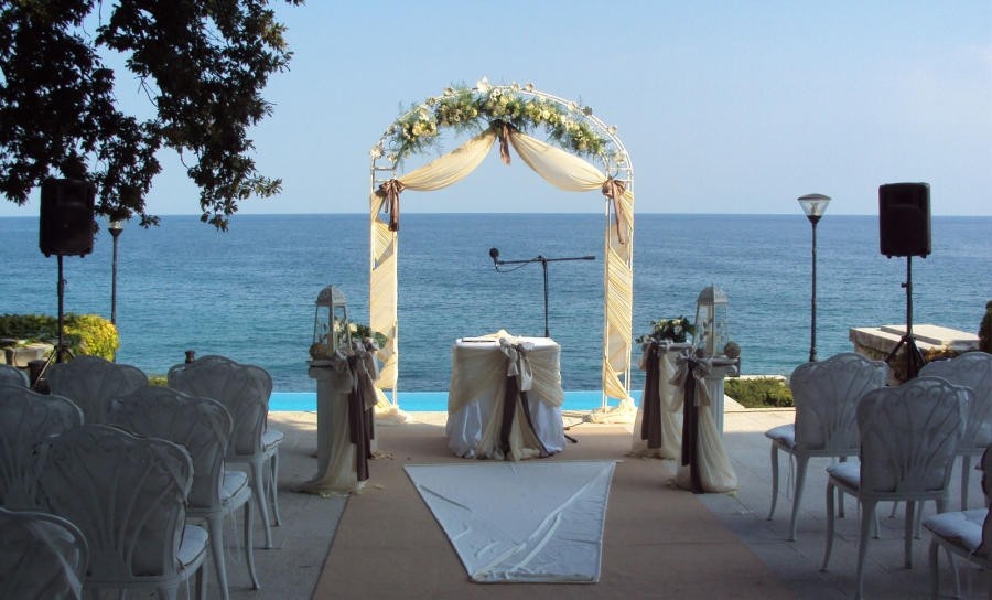 На слънчевата площадка пред хотела, в близост до инфинити басейна, можем да направим Вашия изнесен ритуал, както и да поставим високи коктейлни маси за Вашите гости, които с чаша шампанско в ръка да се насладят на безкрайната морска шир, изчаквайки началото на официалната вечеря.