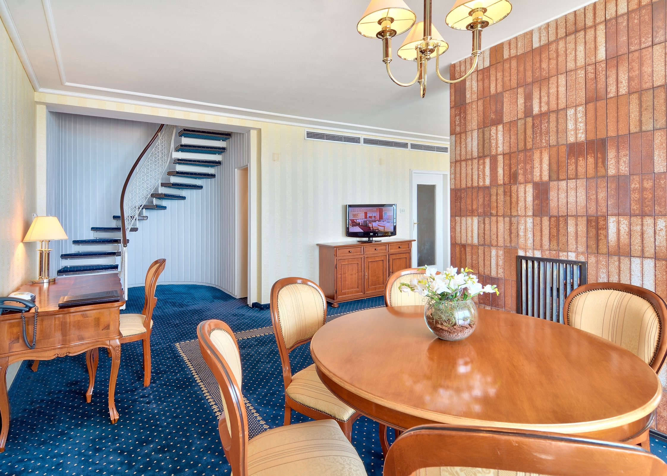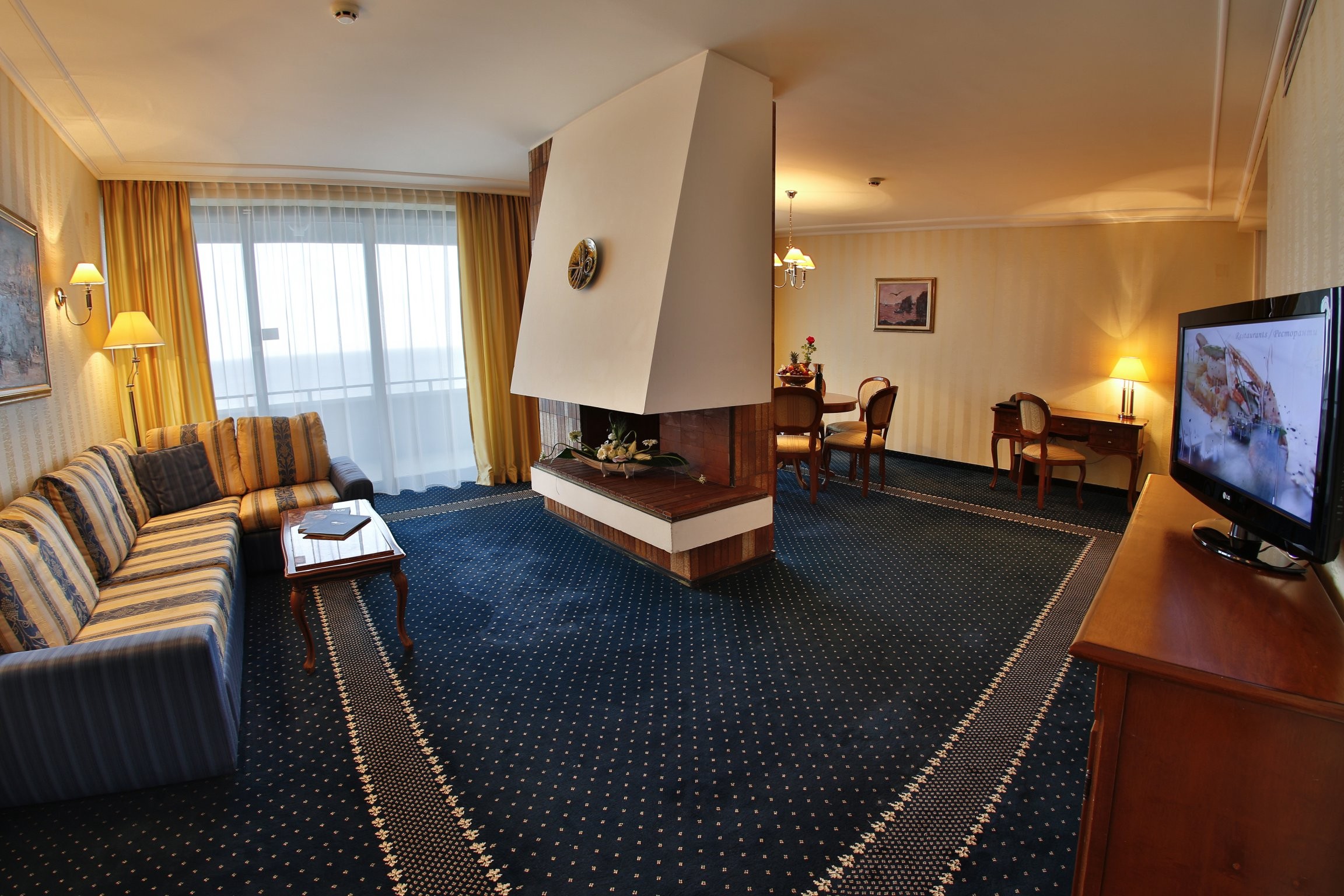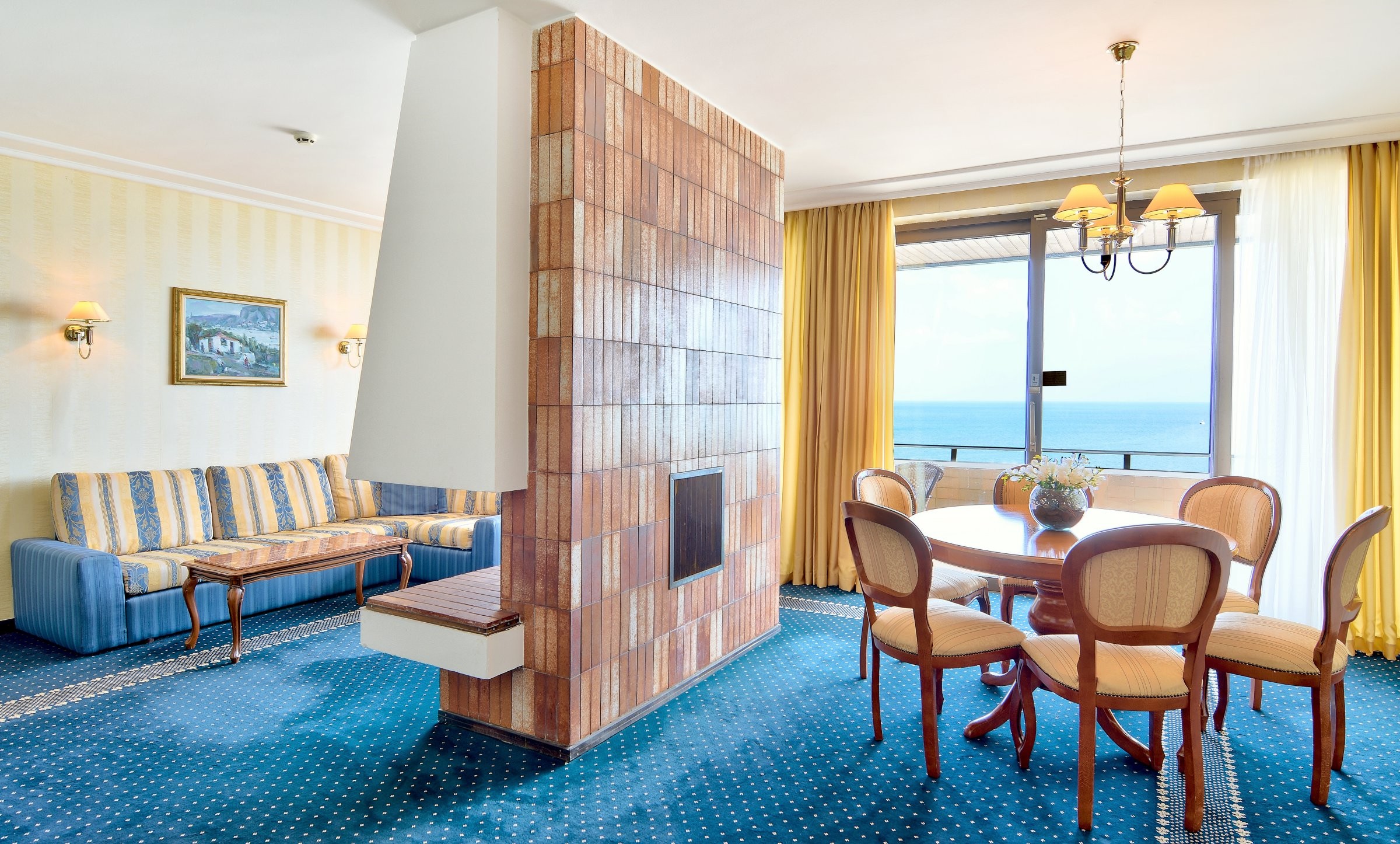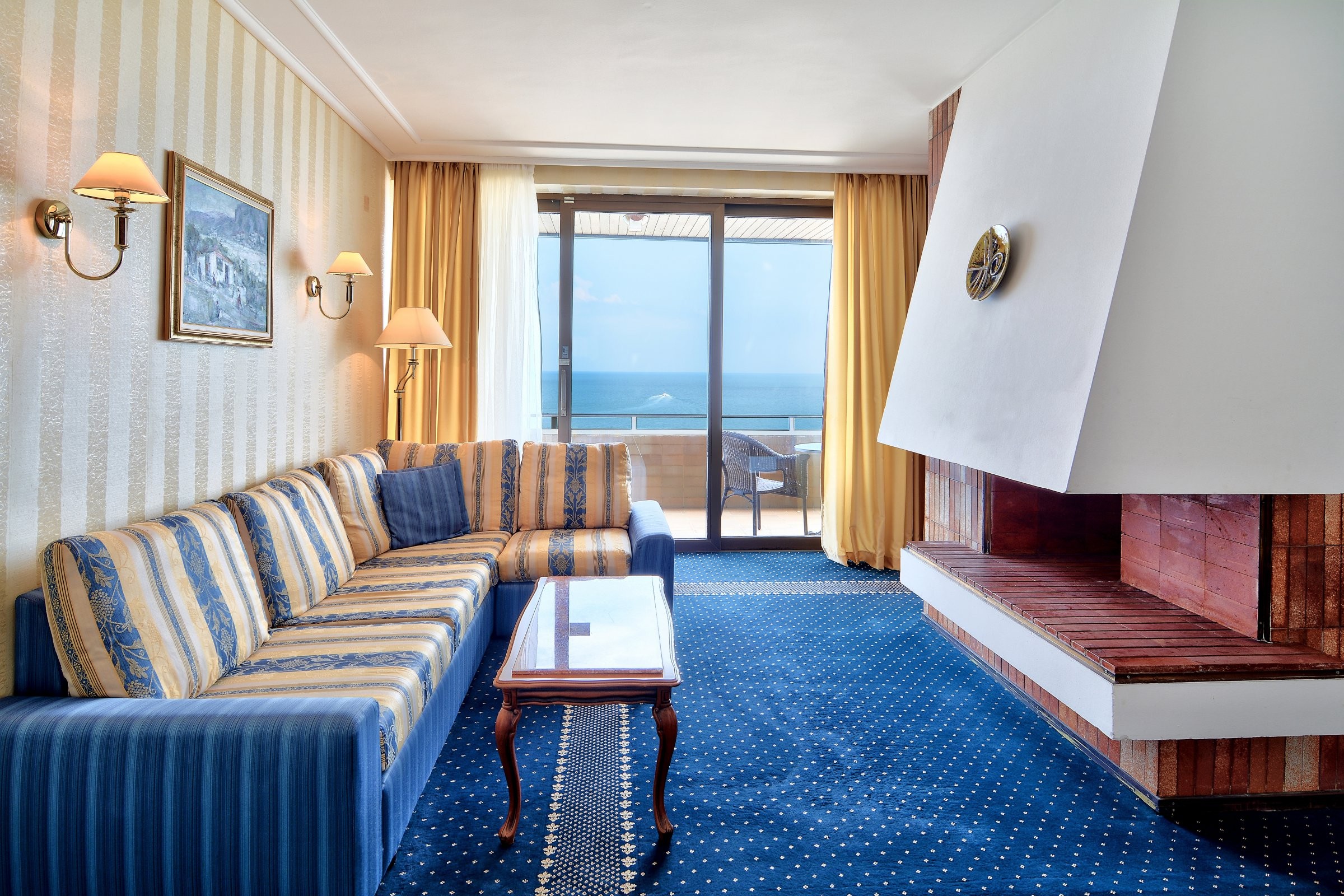 Усетете почивка обвита в простор, лукс и безкрайна гледка. На първото ниво е всекидневната с удобен кът за сядане, трапезария с маса за хранене, малка помощна кухня с мивка и мини хладилник, тоалет за гости. Декоративната камина допринася за спокойната и уютна атмосфера. На второто ниво на апартамента са двете спални. Първата е с двойно легло, а втората с две единични легла. Всяка от спалните разполага с отделна баня с вана. От просторните тераси можете да се насладите на приятната гледка към плажа и успокояващия шум на вълните. Мезонетите са подходящи за настаняване на 4 възрастни. Опция за бебешка кошара.