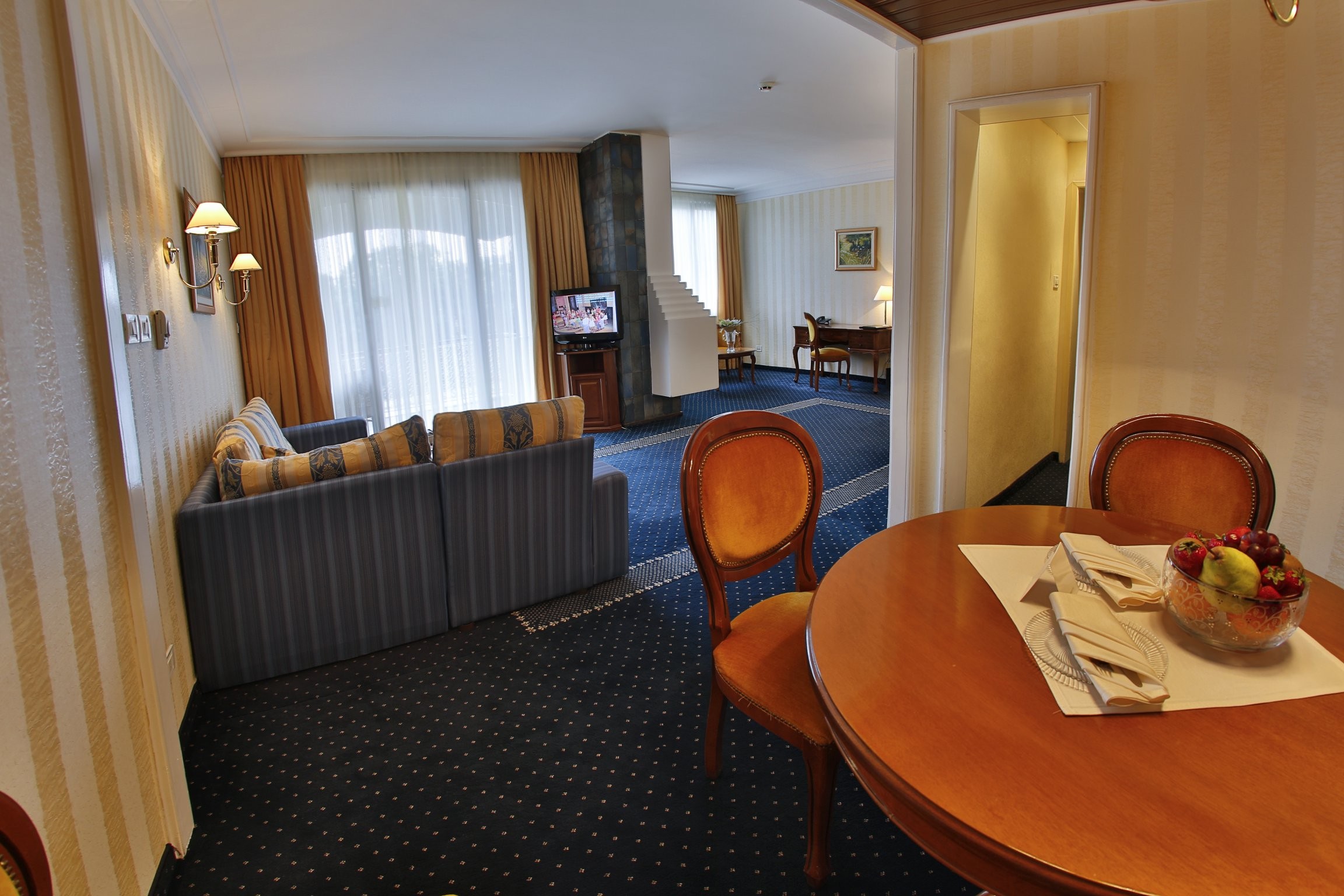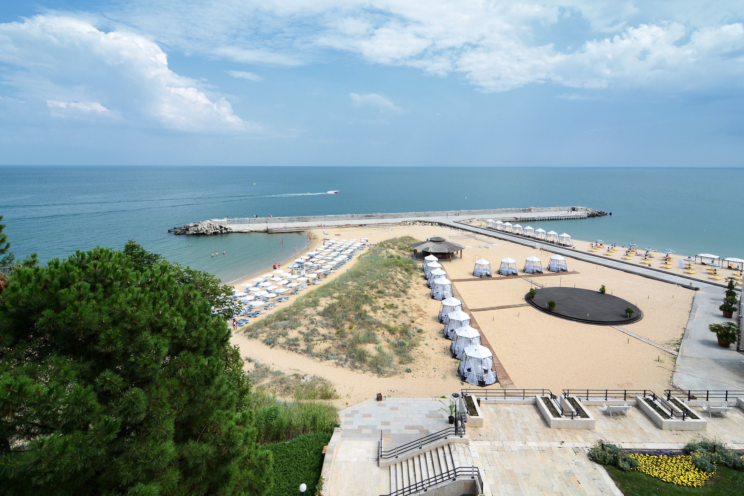 17 двойни стаи с балкон всяка 25 м2 и 14 без балкон с размер 30 м2. Просторни, елегантни стаи в съвременен стил. Панорамни прозорци и самостоятелни балкони, с гледка към красиво оформените градини и морския бряг.