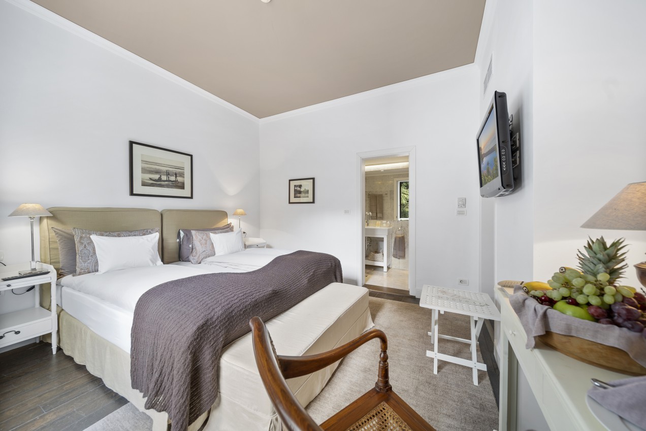 5 двойни стаи без балкон, 25 м2. Една от стаите се намира на първи етаж и 4 двойни стаи са разположени на втори етаж. Модерни и стилни, двойните стаи предлагат всички необходими удобства за приятен престой: висококачествено спално бельо, пухени завивки, меки халати и чехли, натурална козметика.
