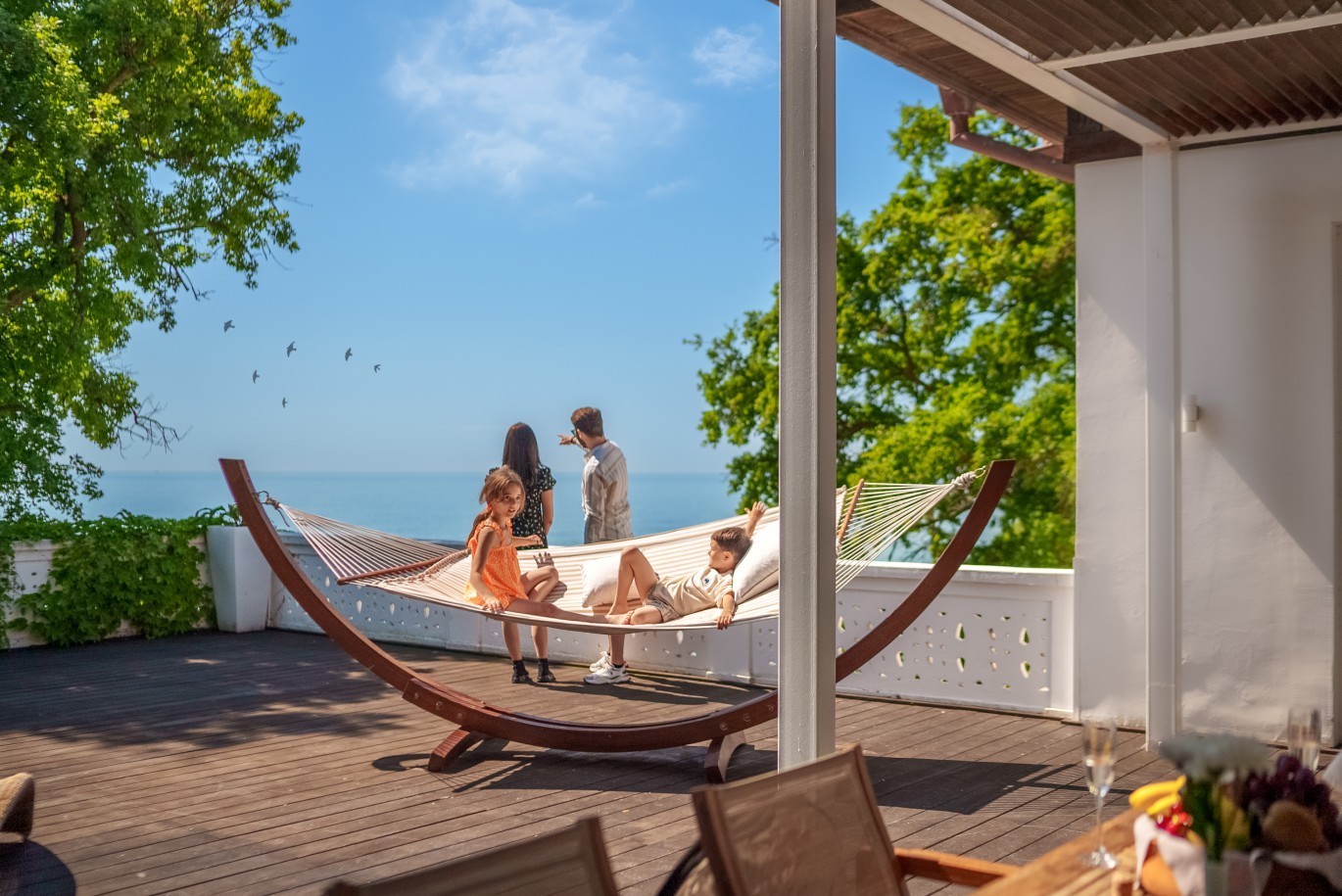 Вие определено заслужавате най-доброто! Ето затова създадохме и този луксозен панорамен апартамент, в който всеки детайл е идеално обвързан с концепцията на хотела за презареждане със страст, самочувствие и увереност. Този просторен двуспален апартамент вдъхновява с панорамната си гледка към морето. Състои се от хол, две спални, две бани и голяма тераса, комфортно обзаведена с маса за хранене, шезлонги и хамак. Насладете се на пленяваща гледка. Заредете се с енергията на красивите морски изгреви и посрещнете с чаша вино спиращите дъха залези.