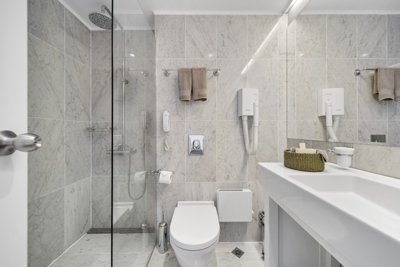5 двойни стаи без балкон, 25 м2. Една от стаите се намира на първи етаж и 4 двойни стаи са разположени на втори етаж. Модерни и стилни, двойните стаи предлагат всички необходими удобства за приятен престой: висококачествено спално бельо, пухени завивки, меки халати и чехли, натурална козметика.