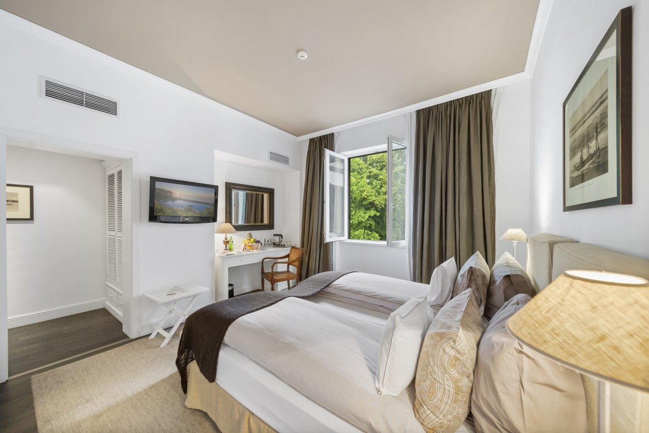 Двойната стая впечатляват със спокоен, стилен и практичен дизайн и приканват към изживяване на една незабравима почивка. Естествена светлина изпълва елегантното пространство през деня, а вечер изключително удобните легла предлагат превъзходна почивка.