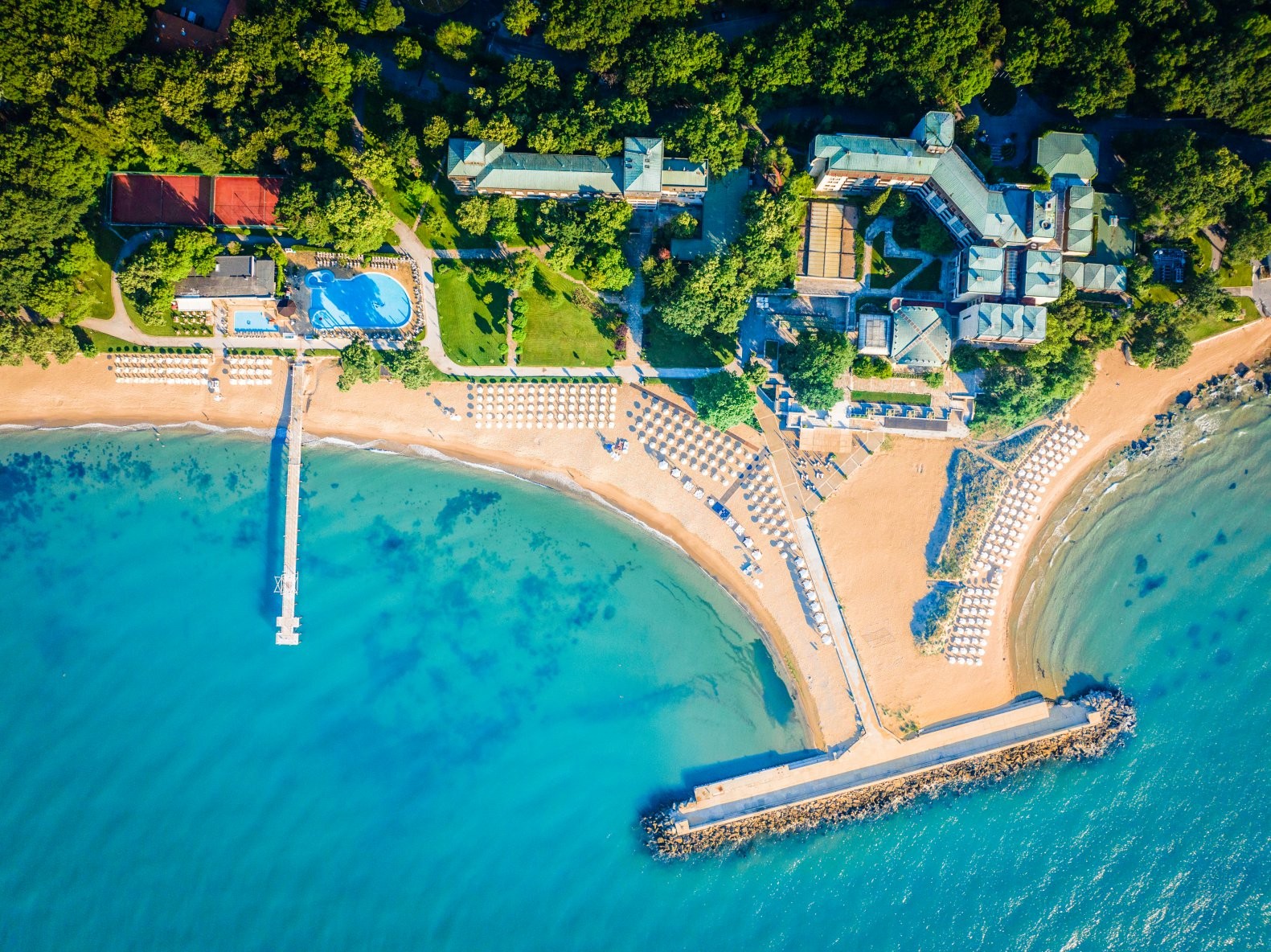 Позволете на сетивата си да се докоснат до фин златен пясък, гален от кристална морска вода, нежен морски бриз, смесен с аромата на вековна гора и уникален хидротермален източник на първа линия до морето.